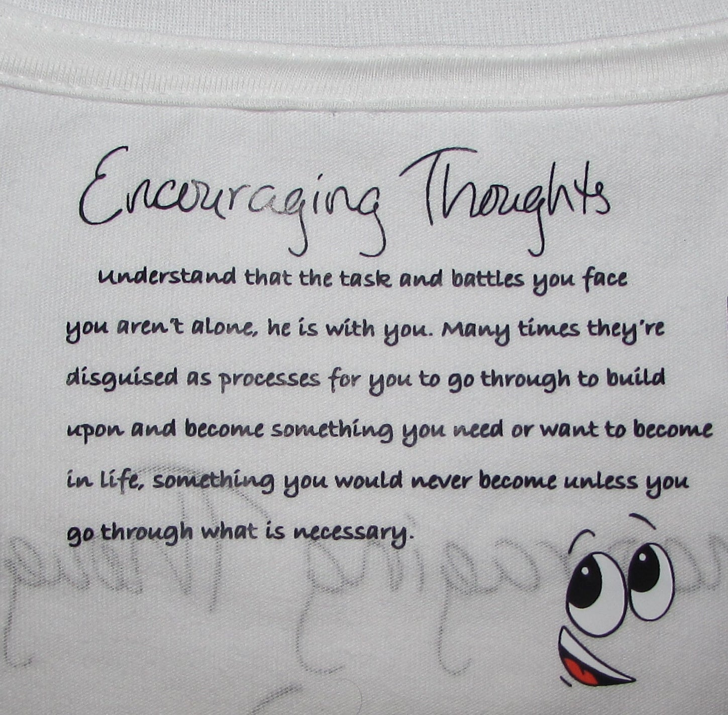 ~ Encouraging Neck Tag: Written inside the neck line to reflect a different perspective on the trials you encounter through the day
